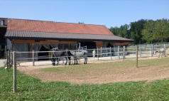 • Sattelkammer mit warm Wasser, gedeckte Anbindeplätze, Abspritzplatz, WC